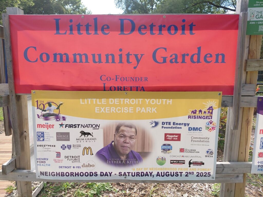 At the garden’s entrance, there’s a picture of Luther Keith, a beloved Detroit community leader. Keith worked as a journalist and editor at The Detroit News for more than 30 years, and the founder and executive director of Arise Detroit!, a nonprofit coalition that mobilizes volunteers and neighborhood groups to promote community improvement across the city. Keith died March 5, 2025.