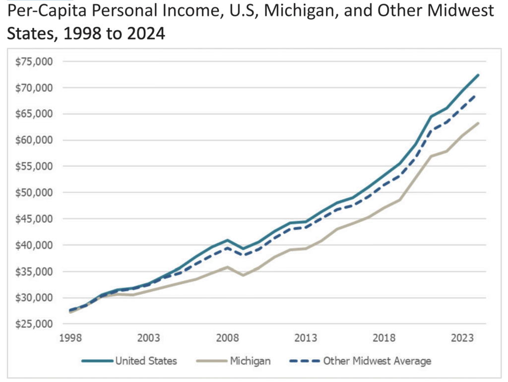 - Michigan ranks 35th in real median household income and 50th in income growth over the past 25 years, limiting families’ ability to afford healthy food, stable housing and quality care.
