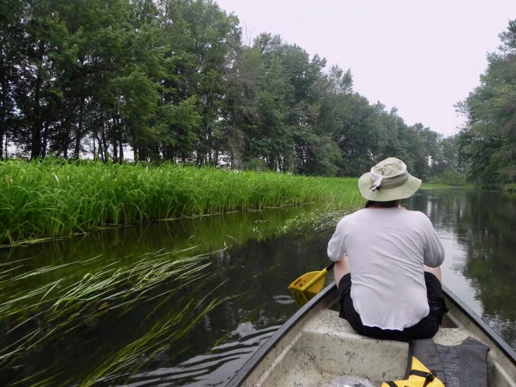 The only sounds on this quiet and peaceful day are the canoe paddle breaking the water surface with each rhythmic stroke, the soft swishing sound of the wild rice stalks hitting the side of the canoe, and the “conk-la-ree” song of nearby red-winged blackbirds.